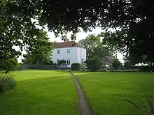 The manor of this village survives at Hall Farm as a farm building with some medieval features, and an adjacent farm building was probably once an early 16th-century house. Apart from these buildings, the abandoned village is indicated by earthworks of a medieval moated site and enclosures. There are also indications of three fish ponds, of which one is still a duck pond,[1] and two contain rubbish; however it is now thought that there was originally a single fish pond. One of the supposed fish ponds is among the farm buildings and is overgrown.[8] Prehistoric and Roman remains have not yet been found here, as there have been no excavations as of April 2010.[7]