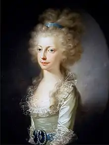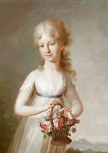 Maria Clementina of Austria (24 April 1777 – 15 November 1801) was an Austrian archduchess and the tenth child and third daughter of Leopold II, Holy Roman Emperor and Maria Luisa of Spain. In 1797 she married her first cousin Prince Francis, Duke of Calabria, heir to the kingdoms of Naples and Sicily. She was modest, well educated and kind, becoming popular in her adoptive country.[2] Afflicted with frail health, she died of tuberculosis, age twenty four. Her only surviving child was Princess Caroline, Duchess of Berry.