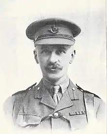 During the period between the Second Boer War and the First World War Eden became the last adjutant of the 3rd (Militia) Battalion of The Oxfordshire Light Infantry, finishing this service on 31 March 1908.[31] He was also posted in India for a period of time during this decade, serving as the Station Staff Officer and Assistant Cantonment Magistrate of the garrison at Subathu from October 1904.[32] The Soldiers of Oxfordshire Museum holds a photograph of him and his company dated December 1906 taken in Lucknow with Eden named as a Major in this photograph due to his Brevet Major status, but he was fully promoted to Major on 18 September 1911.[33] In October 1911 following his promotion to full Major he was transferred to the 2nd Battalion in Aldershot.[34]
