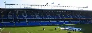 Many of his works have since been demolished for redevelopment, especially in wake of the Taylor Report and the move to all-seater stadiums.[6] For instance, the Trinity Road Stand at Villa Park, considered his masterpiece, was demolished in 2000.[11] The main stand and pavilion at Craven Cottage, the facade of the main stand at Ibrox (although the stand itself has been remodelled) and the Bullens Road and Gwladys Street stands at Goodison Park survive; they are now listed buildings, as was the Leitch-designed main stand at Heart of Midlothian's Tynecastle Park; however, in 2016 permission was granted for that structure to be demolished and replaced.[12][13]