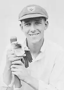 Inevitably, he was compared to his New South Wales and Australian teammate, Bradman. In contrast to Jackson, Bradman made not even a pretence of being a stylist. A writer, comparing the two after Jackson's Test début, stated that Bradman had "forced his way to the top by sheer natural ability, a straight bat, cool cheerful temperament, determination and enterprise", but Jackson was "the finished batsman, the batsman who knows one stroke for each ball ... [and] executes that stroke with an artistry that has no parallel to this day".[69] Before the 1930 tour of England, experts such as Frank Woolley, Percy Fender and Maurice Tate rated Jackson as more likely to succeed in English conditions; Bradman was seen as too unorthodox or even cross-batted for softer English wickets.[70]