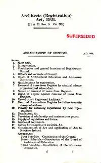 - An Act to provide for the Registration of architects and for purposes connected therewith.