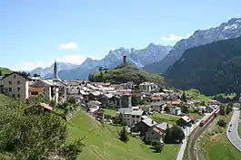 The Chasté (a prehistoric site, a medieval fortress and a church) and the Doppelwohnhaus (Double-house) with barn are listed as Swiss heritage sites of national significance.[6]