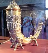 Arent Nicolai Dragsted (9 June 1821 – 15 August 1898) was a Danish goldsmith based in Copenhagen who was granted the predicate Purveyor to the Court of Denmark shortly before his death. His company, A. Dragsted, still exists today. Dragsted created the golden horn that was presented to Bernhard Severin Ingemann by Danish women on the occasion of his 75 years birthday. The horn is now on display in the Danish Museum of National History at Frederiksborg Castle in Hillerød. He has also created the golden wreath for Frederick VIIøs sarcofague in Roskilde Cathedral.