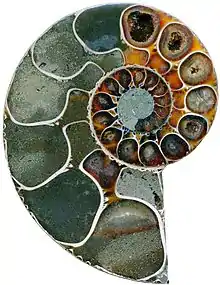 Argonauticeras produced an evolute shell with a trapezoidal whorl section, slightly impressed inner rim (or dorsum), a somewhat flattened outer rim (venter) and broadly arched sides, covered with fine, weakly crinkled ribs.