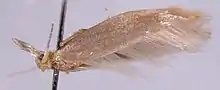Argyresthia praecocella, the ochreous argent or juniper berry miner moth, is a moth of the family Yponomeutidae. It is found in most of Europe, except Ireland, Portugal and the Balkan Peninsula.[1] It is also found in Russia and across the Palearctic to Japan.