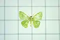 The species' wingspan is about 1 cm.[4] The ground color is greenish. Its caterpillar is a light, dull green color with dorsal and lateral dark suffusions. A subdorsal white line is present. Body rugose (wrinkled) with many small conical spines. Spiracles reddish brown.[5] Host plants are Buchanania species.[6] Pupation occurs in a cocoon made from detritus and flower parts.