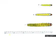 The larvae mainly feed on Douglas-fir, Rocky Mountain Douglas-fir, western hemlock and western larch, but have also been recorded on grand fir, ponderosa pine and spruce. It appears to overwinter in the egg stage. Larvae are present from early May to mid-June. Pupation takes place in late June and adults emerge soon after.