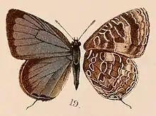 | Acesina arisba = Arhopala birmana, male, from original description by de Niceville, 1891. | |