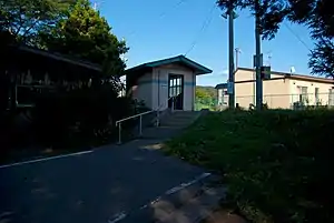 The station has one ground-level side platform serving a single bidirectional track. There is no station building, but only a small rain shelter for passengers on the platform. The station is unattended.