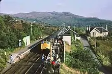 A camping coach was also positioned here by the Scottish Region from 1952 to 1960, the coach was replaced in 1961 by a Pullman camping coach which was joined by another Pullman in 1966. From 1967 to 1969 there were 2 standard camping coaches here, all camping coaches in the region were withdrawn at the end of the 1969 season.[5]