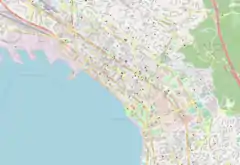 Hébrard designed the monumental axis so that looking uphill from the square one could see the city's Byzantine walls and the Upper Town.[3][4][6] Also visible from the square would be what Hébrard called the Place Civique or Civic Square, which would be the city's administrative heart along European lines:[3][4] it would feature the City Hall on the left, the court houses on the right and a grand triumphant arch leading uphill from the Civic Square. This part of the design was never realized due to a lack of funds,[3] although following archeological excavations unearthed the ancient Roman agora at the same spot were the Civic Square was planned.