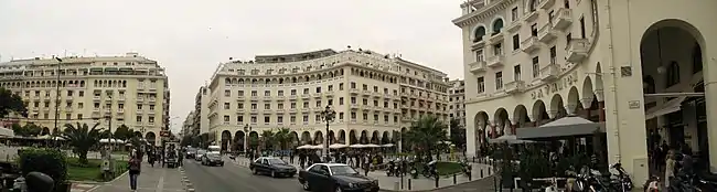 Aristotelous Square (Greek: Πλατεία Αριστοτέλους, IPA: [plaˈtia aristoˈtelus], Aristotle Square) is the main city square of Thessaloniki, Greece and is located on Nikis avenue (on the city's waterfront), in the city center. It was designed by French architect Ernest Hébrard in 1918, but most of the square was built in the 1950s. Many buildings surrounding the central square have since been renovated and its northern parts were largely restored in the 2000s.[1]