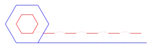 In his Two New Sciences, Galileo uses the wheel problem to argue for a certain kind of atomism. He begins his analysis by considering a pair of concentric hexagons, as opposed to circles. Imagining this hexagon "rolling" on a surface, Galileo notices that the inner hexagon "jumps" a little space with each roll of the outer onto a new face.[5] He then imagines what would happen to the limit as the number of faces on a polygon becomes very large, and finds that the little space that is "jumped" by the inner polygon becomes smaller and smaller. He writes: