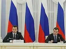 Arkady Vladimirovich Dvorkovich (Russian: Арка́дий Влади́мирович Дворко́вич; born 26 March 1972)[1] is a Russian public servant and economist, who was Deputy Prime Minister in Dmitry Medvedev's Cabinet from 21 May 2012 until 7 May 2018. He was previously an Assistant to the President of the Russian Federation from May 2008 to May 2012.
