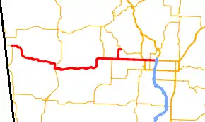 Highway 102 (AR 102, Ark. 102, Hwy. 102) is an east–west state highway in Benton County, Arkansas. The highway connects several of western Benton County's population centers to Bentonville and Interstate 49 (I-49), the main north-south route in the Northwest Arkansas region. A single spur route runs north-south as Main Street in Centerton. Both highways are maintained by the Arkansas Department of Transportation (ArDOT).