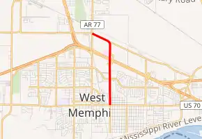 Arkansas Highway 191 (AR 191, Hwy. 191) is a 2.27-mile (3.65 km) state highway located entirely within West Memphis in the U.S. state of Arkansas. The highway runs from U.S. Highway 70 (US 70) north to AR 77.[2] The highway is maintained by the Arkansas Department of Transportation (ArDOT).