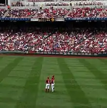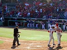 The Razorbacks play baseball home games in Baum-Walker Stadium at George Cole Field, which holds 10,737.[3] Arkansas was the first program in the nation to have an average attendance over 8,000 for the course of the season.[4] Baum Stadium has hosted NCAA regionals in 1999, 2004, 2006, 2007, 2010, 2017, 2018, and 2019. The Arkansas baseball team also hosted an NCAA Super Regional in 2004 against Florida State, in 2015 against Missouri State, in 2018 against South Carolina, and once again in 2019 against Ole Miss. One of the games in the 2015 Super Regional series against Missouri State set the all-time stadium attendance mark at 12,167. The first game of the South Carolina Super Regional series had 11, 722 in attendance making it the 3rd highest attended game in Baum stadium history. Baum stadium was voted top ballpark in collegiate baseball by Baseball America, 20 years after claiming the top spot in a 1998 poll.[5]