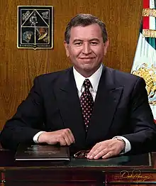López Nogales polled at 43% in a predicted landslide victory right before the election according to the most prestigious survey service, Covarrubias y Asociados.[11] His main opponents were National Action Party (PAN) candidate Enrique Salgado Bojórquez and Party of the Democratic Revolution (PRD) candidate Jesús Zambrano Grijalva. As expected, López Nogales won the race with over 40% of the vote, almost 9% ahead of the PAN and more than 18% ahead of the PRD.[12] His six-year term saw notable improvements in health and education in Sonora,[13] though there was also a significant increase in public debt.[14] In 2001, he visited his hometown of Cananea and designated it the capital of the state for a day in commemoration of the city's centennial anniversary.[15]