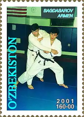 Armen Bagdasarov was a member of the Uzbekistan national judo team from 1993 to 2001. The peak of his athletic career began in 1996, when he won a gold medal at the 1996 Asian Judo Championships and won an Olympic silver medal at the 1996 Summer Olympics in Atlanta. He later won a silver medal at the 1998 Asian Games and became a two-time Champion of Asia at the 1999 Asian Judo Championships. Bagdasarov also competed at the 2000 Summer Olympics without success. He also has a World Championship silver medal in kurash. For his sport achievements, Bagdasarov was awarded the title Honored Sportsman of the Republic of Uzbekistan. On the tenth anniversary of the independence of Uzbekistan, a series of stamps honoring athletes were published, one of which is dedicated to the sporting achievements of Armen Bagdasarov.[1]