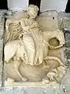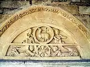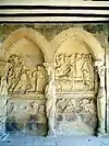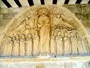 | Sculptures in the portico of the Basilica of San Prudencio in Armentia. | ||||