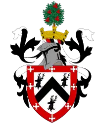 Escutcheon: Chevronny Or and Gules on a chief Sable five goutties three and two Argent. [39] |