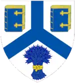 Escutcheon: Azure, on a chevron ermine three books fessewise, each with two clasps downwards, Or. |