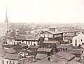 Looking north east. On the left hand edge one can see the Church of the Holy Trinity and in the centre can be seen the spire of the Toronto Normal School. Further to the right are group of churches, one which is Knox Presbyterian (photo)