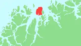Arnøya (Norwegian) or Árdni (Northern Sami) is the 15th largest island in Norway. The 276-square-kilometre (107 sq mi) island is located in Skjervøy Municipality in Troms og Finnmark county. The highest peak is the 1,170-metre (3,840 ft) tall mountain Arnøyhøgda. There are regular ferry connections to the island from the nearby islands of Laukøya and Kågen, but there are no road connections to the island.[1] Arnøy Church is located on the southern shore of the island.