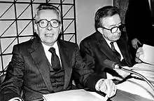 Arnaldo Forlani, OMI OESSH (Italian pronunciation: [arˈnaldo forˈlaːni]; born 8 December 1925)[2] is an Italian politician and statesman who served as the 43rd prime minister of Italy from 18 October 1980 to 28 June 1981.[3] He also held the office of deputy prime minister, minister of Foreign Affairs and minister of Defence.[4]