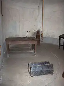 After being interrogated,[10] and tortured,[11] Fraiteur, Raskin and Bertulot were sentenced to death by the Oberfeldkommandantur's military court in Brussels after a show trial that was supposed to serve as an example to the Belgian population.[7] They were hanged on 10 May 1943 at Fort Breendonk.[7][10][Notes 2] They were buried at the "Enclos des fusillés" in Schaerbeek.[Notes 3] On 7 June 1945, Fraiteur's body was exhumed in order to be buried in the family vault on the cemetery of Saint-Gilles.[15]