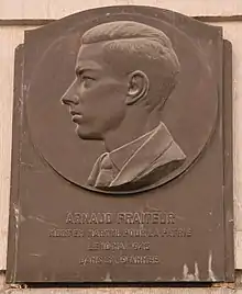 A commemorative plaque is attached to Fraiteur's family home at Rue de la Concorde 60.