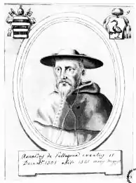 He was named Cardinal protector of the Order of the Friars Minor (Franciscans) in 1313, and also the Governor of Bologna and the Governor of Ferrara; the Bolognese requested Pellegrue as Protector in 1311. As cardinal elector, he participated in the papal conclave, 1314-1316 which elected Pope John XXII. At the conclave Pellegrue led the Gascon faction, which numbered ten of the twenty-three total cardinals, all ten being creatures of Clement V, who were supported by Clement V's nephew, Bertrand de Got, viscount of Lomagne and Raimond Guilhem de Budos.[5] He died in August 1331 in Avignon.[1]