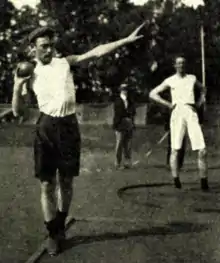 Arne Halse puts a shot at the Old Frogner Stadion in Oslo on 1–2 September 1906.