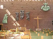 Since the 1980s, Haugen Sørensen has become one of Denmark's most productive religious artists, decorating more than 25 churches with forceful, provocative works in a variety of art forms including painting, frescos, stained glass, ceramics and sculpture. His subjects include the Binding of Isaac, the Last Supper, the Crucifixion, the Resurrection and the Supper at Emmaus.[5]