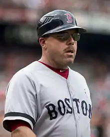 In his first major league assignment, Beyeler worked for three years (2013–15) as the Red Sox' first base and outfield coach,[5] winning a 2013 World Series ring. During that season, Beyeler helped veteran centerfielder Shane Victorino convert to right field, a notoriously difficult position at Boston's home stadium, Fenway Park. When Victorino won a 2013 Gold Glove for defensive excellence, he invited Beyeler to the off-season awards ceremony in New York as his guest.[6] During 2014–15, Beyeler successfully converted infielders Mookie Betts and Brock Holt into outfielders. The conversion helped Holt improve his versatility as a utilityman. Betts, however, became a regular. He was the Red Sox' starting centerfielder in 2015; then, moving to right field a year later, he won multiple Gold Gloves (2016–18 inclusive) and the Wilson Defensive Player of the Year Award in 2016.[7] But veteran shortstop Hanley Ramírez' conversion to leftfielder was a disaster in 2015,[8] and Boston released Beyeler on October 4, 2015.[9][10]