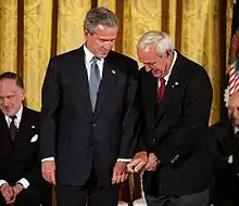 Palmer was inducted into Omicron Delta Kappa - The National Leadership Honor Society in 1964 at Wake Forest University. He was awarded the Presidential Medal of Freedom in 2004 and the Congressional Gold Medal in 2009.[34][35] He was the first golfer to be awarded the Presidential Medal of Freedom and the second golfer, after Byron Nelson, to be awarded the Congressional Gold Medal.[36]
