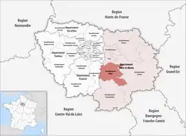 The arrondissement of Melun is an arrondissement of France in the Seine-et-Marne department in the Île-de-France region. It has 59 communes.[2] Its population is 278,808 (2016), and its area is 617.1 km2 (238.3 sq mi).[3]