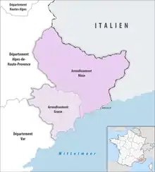 Map of arrondissements of the Alpes-Maritimes department.