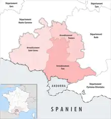 The 3 arrondissements of the Ariège department are:[1]