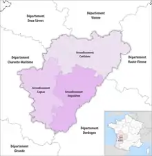 The borders of the arrondissements of Charente were modified in January 2017:[7]