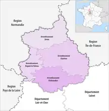 - Arrondissement of Châteaudun, (subprefecture: Châteaudun) with 61 communes.[3] The population of the arrondissement was 59,262 in 2016.