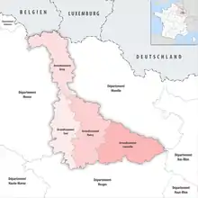 Map of arrondissements of the Meurthe-et-Moselle department.
