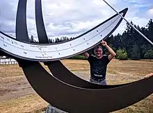 The equatorial sundial at Battle Point Park, Bainbridge Island, Washington, being admired by Fred Sammartino