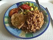 Arroz de fríjol cabecita negra is a rice-based dish from the Caribbean Coast of Colombia that utilizes black-eyed peas as the legume, differing from other rice dishes that are usually prepared with different legumes such as beans, peas, lentils, and Pigeon peas.[1][2]