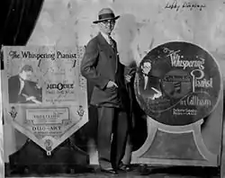 In addition to phonograph records, Art Gillham also recorded piano rolls on the Columbia, Supertone, Mel-O-Dee, Vocalstyle and Duo-Art labels. While recording for Columbia he made regular tours of the Pantages and Loews vaudeville circuits in the South and West. However, his whispering style was not as successful in theaters as they did not have microphones. Everywhere he appeared on stage he also appeared on radio and in music and record stores. Window displays featured his recordings and piano rolls.[1]