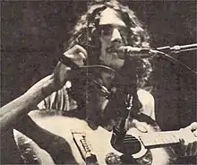 In Ezequiel Abalos' 1995 book Historias del rock de acá, Amaya recalled: "He felt abandoned because he wanted to continue playing with the band, as he was left alone and it was still pending to record another album with Microfón, he recorded Artaud with the songs he had for Pescado Rabioso. When I heard the album, I wanted to [die]."[12] As a result, Spinetta enlisted his brother Gustavo and former Almendra members Emilio del Guercio and Rodolfo García to play in the album.[13] Spinetta explained to Berti that he decided to release the album under Pescado Rabioso's name because he felt using his own would be "too pompous", and "to prove to the former members of the group that Pescado Rabioso was [him]."[14] The use of the band's name has also been described as a contractual obligation.[10][15] Artaud was recorded at studio Phonalex in the barrio of Belgrano, a few blocks from the Spinetta house.[16] Journalist Miguel Grinberg described the sessions as "a very private ceremony". According to Rodolfo García, the songs were "practically made in the studio" and recorded in few takes. He stated that in "Superchería" and "Las habladurías del mundo", "the concept with which the tracks were created was similar: to play them with absolute freedom [and] the biggest swing of which we capable".[1] Spinetta composed and recorded almost the entire album with a Harptone acoustic guitar that he called "the Standel".[nb 1] Lyricist Roberto Mouro has claimed that Spinetta used a Hagström electric guitar in "Todas las hojas son del viento",[18] while journalist Juan Carlos Diez recalled that the musician told him that he recorded the whole album with a mahogany-colored acoustic Gibson guitar.[19] Artaud was produced by publisher Jorge Álvarez for his label Microfón, a subsidiary of record company Talent. Álvarez had founded Microfón after the 1970 closure of his company Mandioca, the first independent record label of Argentine rock.[20][21][22] During the late 1960s and early 1970s, the circulation of Artaud's bibliography intensified and Álvarez played an important role in this process by publishing an anthology of the poet in 1968.[23]