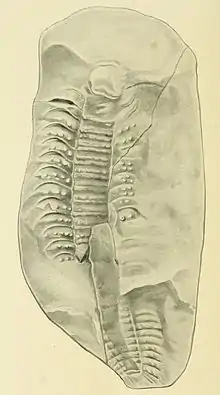 Arthropleuridea is an extinct subclass of myriapod arthropods that flourished during the Carboniferous period, having first arose during the Silurian, and perishing due to climate change just before the Early Permian. Members are characterized by possessing diplosegement (fused "double segments", as in modern-day millipedes) paranotal tergal lobes separated from the body axis by a suture, and by sclerotized plates buttressing the leg insertions. Despite their unique features, recent phylogenetic research suggests Arthropleuridea be included among millipedes in the class Diplopoda.[1][2] The subclass contains three recognized orders, each with a single genus.[3]
