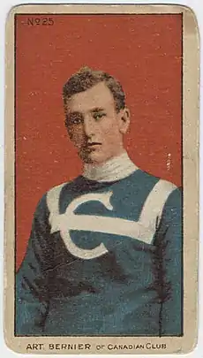 ![]() A cigarette pack hockey card showing Bernier in the original Canadiens uniform of 1909–10. | |||