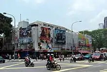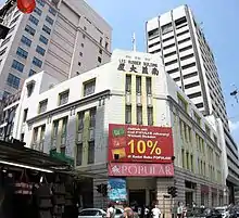 The thematic link between the Art Deco style and the new entertainment industry was also evident in the design of the Odeon Cinema (Chinese: 奥迪安戏院) on the corner of Jalan Tuanku Abdul Rahman and Jalan Dang Wangi (the former Batu Road and Campbell Road) in Kuala Lumpur.[26] The Odeon Cinema was constructed in 1936 by the Cathay Organization. The standalone Odeon Cinema is one of the last few surviving colonial buildings in Kuala Lumpur. It has undergone various changes. It was acquired by Antenna Entertainments and operated as a cinema again between May 2011 and March 2015.[27][28]